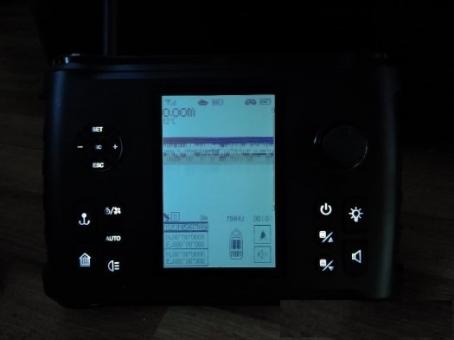 Das Echolot läuft parallel beim Steuern des Bootes auf dem Display. Die Fischgrößen werden hier in klein, mittel und groß angezeigt. Der Messbereich und Empfindlichkeit der Tiefenmessung ist in vier Bereiche aufgeteilt: 2-5 Meter, 5-15 Meter, 15-20 Meter und 20-30 Meter.