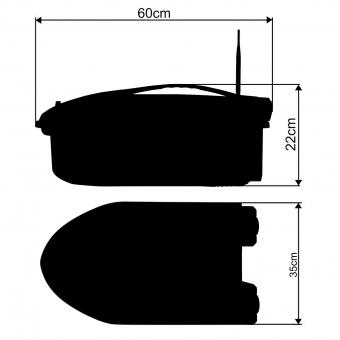 - Bei Ausfall der Fernbedienung oder Verbindung, kehrt das Boot automatisch an den Uferspeicherort zurück der zuvor vom User festgelegt wird.