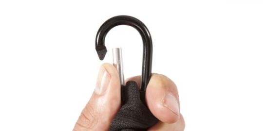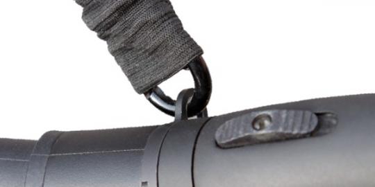 Der Karabiner zum befestigen an der Waffe ist relativ massiv,