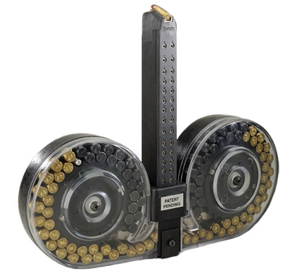 Glock Magazin / Glock Trommelmagazin 9mm 100 Schuss für 17 / 17c  / 18 / 19 / 26 / 34 Durchsichtig Beta C-Mag