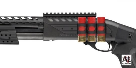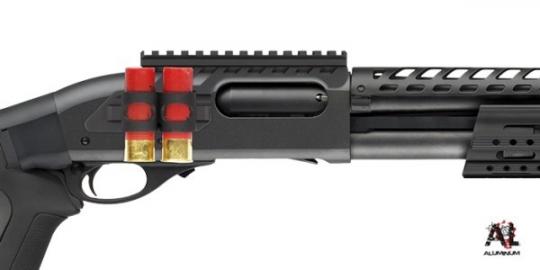 Sattel- Zielfernrohrmontage mit Weaver- Picatinnyschiene und 5er einzelnen Patronenhaltern Remington 870 Halo ATI