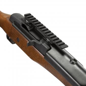 Die flache Aluminiumbefestigung für die Gewehre der Ruger Mini-Serie erlaubt nach wie vor die Verwendung von Werksvisieren aus Eisen.