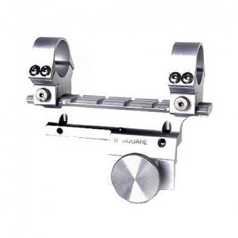 See-under type allows use of gun's sights. Installs by replacing the bolt stop cover plate. Attaches by a single knob to the threaded cover plate. Standard dovetail base.