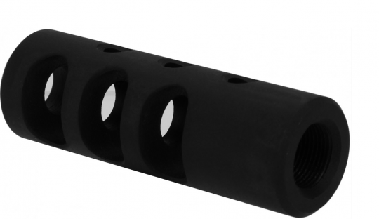 Dieser Mündungsfeuerdämpfer ist eine vollständige Stahlkonstruktion, die aus hitzebehandeltem, erosionsbeständigem Stahl gefertigt wurde. Im Lieferumfang ist auch ein .223/.556 1/2"x28 Schaftkappenwinkel enthalten. Mithilfe dieses Mündungsfeuerdämpfers lassen sich Rückstoß und Hochschlag beim Abfeuern des Projektils merklich reduzieren.