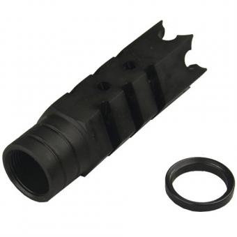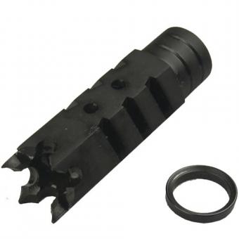 Diese AIM Mündungsbremse reduziert merklich den Rückstoß. Hergestellt aus Hitze und Erosionsbeständigem Stahl.