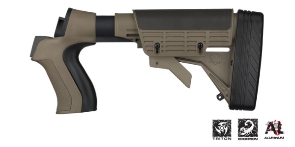 Mossberg .20 GA Talon Schubschaft mit Wangenauflage und Dämpfungssystem Sand ATI