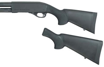 Dieser Schaft wird mit dem patentierten Hogue Overmolded Verfahren hergestellt. Dabei wird über einen harten Kunststoffkern eine zweite weiche Kunststoffschicht gespritzt. Dadurch hat der Schaft eine extrem griffige und rutschfeste Oberfläche.