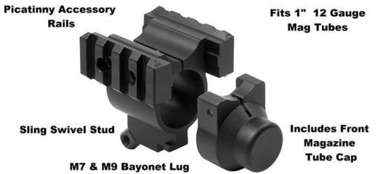 •      Eigenschaften: - Magazine Tube Mount beinhaltet zwei abnehmbare Weaver/ Picatinny Zubehörschienen