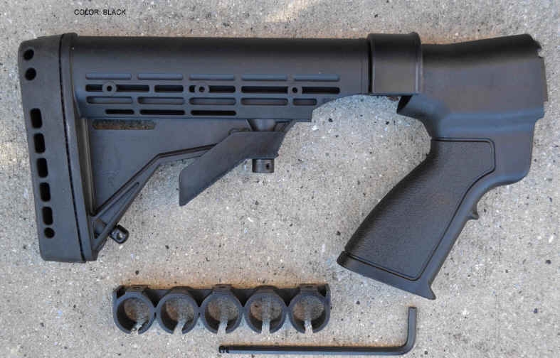 • Lieferumfang: Schubschaft, Pistolengriff, Schaftkappe, Patronenhalter (5 Patronen), Riemenbügelösenaufnahme und Montagematerial