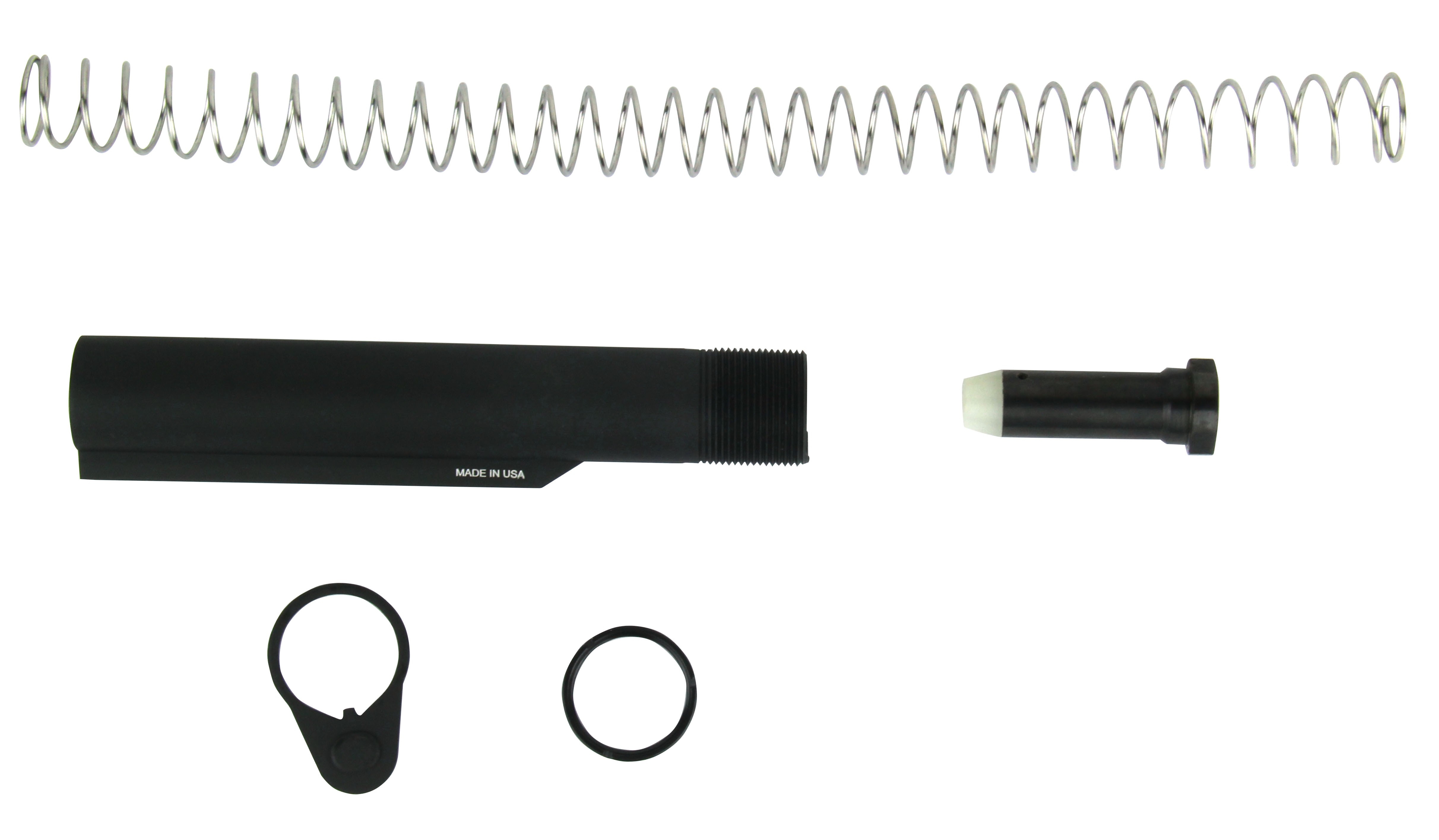| Lieferumfang | - 1 X Mil-Spec 6 Positionen Schließfederrohr - 1 X 3.8 oz. Puffer/ Dämpfer - 1 X .308 Schließfeder - 1 X Standard Endplatte - 1 X Kronenmutter |