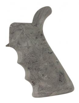 Dieser Griff wird mit dem patentierten Hogue Overmolded Verfahren hergestellt. Dabei wird über einen harten Kunststoffkern eine zweite weiche Kunststoffschicht gespritzt. Dadurch hat der Griff eine extrem griffige und rutschfeste Oberfläche.