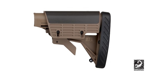 AR-15 Schaft / Strikeforce Schaftkörper mit Wangenauflage und gedämpfter Schaftkappe Sand ATI