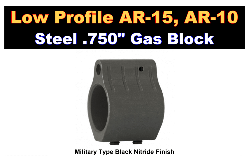 Gas Block Fits Standard size .750" AR-15 and AR-10 rifle Barrels, and it is machined from solid 105 steel finshied with black matte Military type nitride finished. This Low Profile Gas Block wa