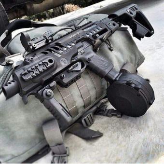 Schaftsystem RONI G2 für die Glock 17 / 19 / etc.. Ein System aus Polymer und Aluminium, der halbautomatische Pistolen in handliche Karabiner verwandelt, die sich zur Selbstverteidigung, für das Sportschießen und für taktische Einsätze eignen.