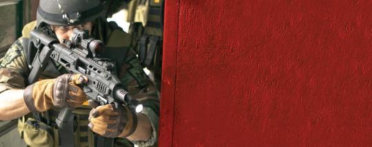 Schaftsystem RONI G2 für die HK USP. Ein System aus Polymer und Aluminium, der halbautomatische Pistolen in handliche Karabiner verwandelt, die sich zur Selbstverteidigung, für das Sportschießen und für taktische Einsätze eignen.