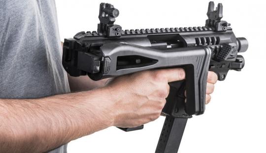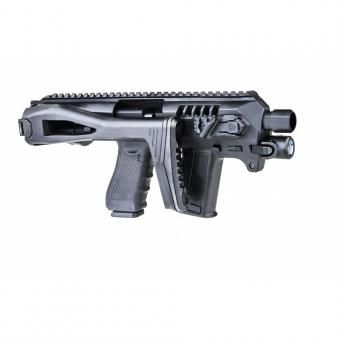 Schaftsystem MICRO RONI für GLOCK-Pistolen. Ein System aus Polymer und Aluminium, der halbautomatische Pistolen in handliche Karabiner verwandelt, die sich zur Selbstverteidigung, für das Sportschießen und für taktische Einsätze eignen.
