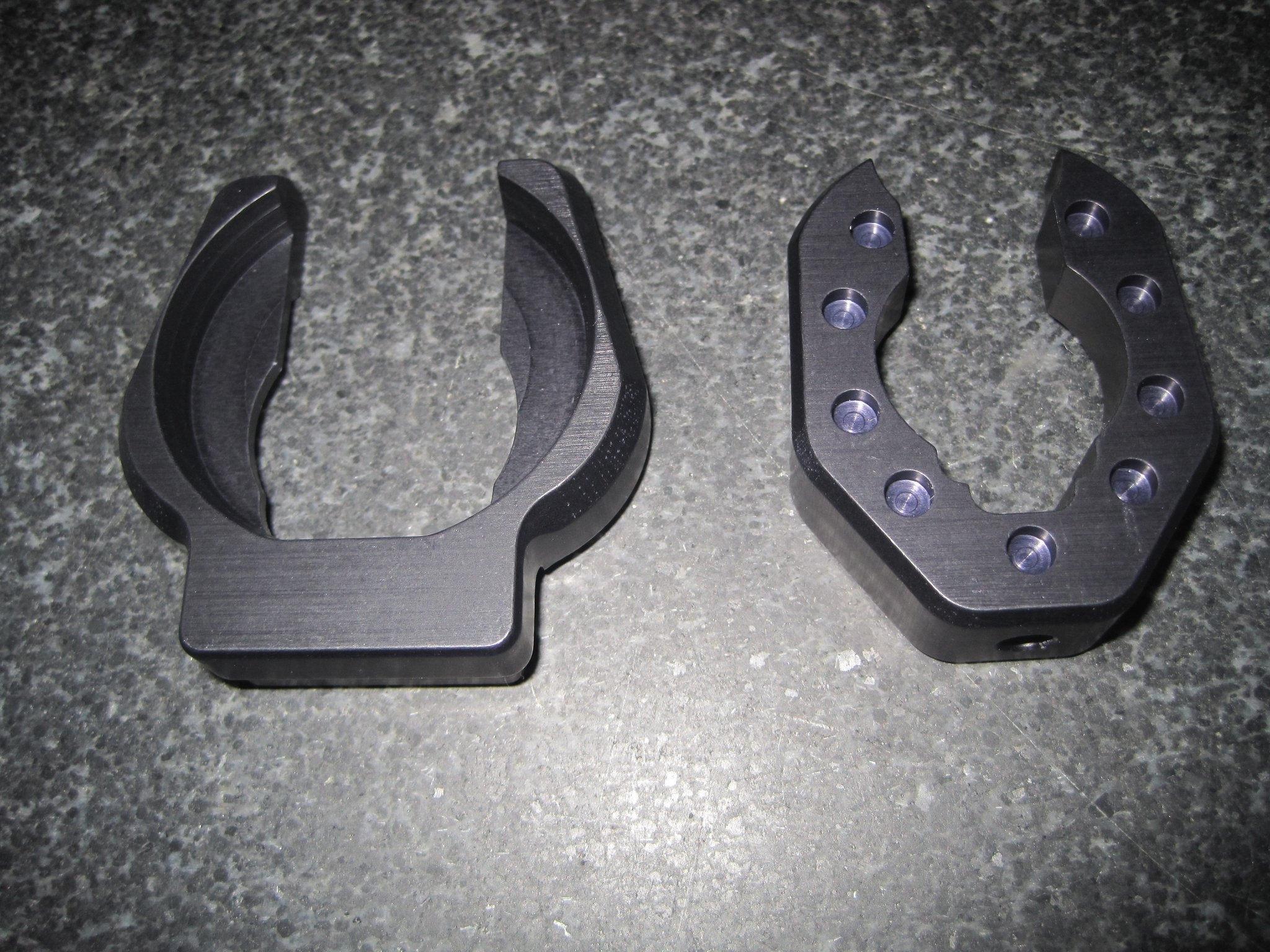 for Magpul MOE hand guards to be used on all current import VEPR V1 or V2 rifles. Simple drop in design requires no modification to rifle, uses existing VEPR hand guard retaining mount and hardware. Does require modified Magpul MOE Mid-length Handguards. We can provide a basic modified set, because Veprs have two types of sights they will still need minor final fitting for each type. The adapters are the two items in the first picture.