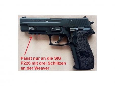 Modell: SIG P226 im Kaliber 9mm Luger und .40 S&W mit Picatinny Schiene (3 Schlitze) (auch P226 Mark25 / MK25 Auswurffenster 2mm anpassen).