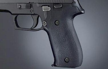 Dieser Pistolengriff wird mit dem patentierten Hogue Overmolded Verfahren hergestellt. Dabei wird über einen harten Kunststoffkern eine zweite weiche Kunststoffschicht gespritzt. Dadurch hat der Pistolengriff eine extrem griffige und rutschfeste Oberfläche.